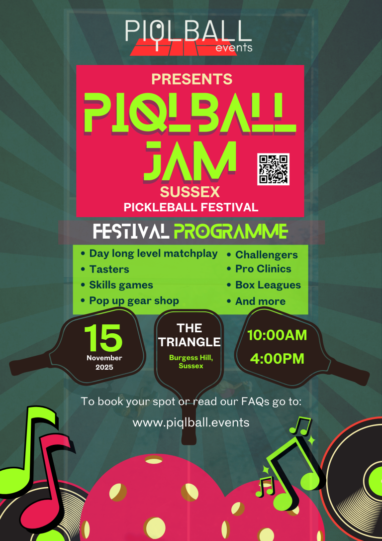 PIQLBALL Events create social-first tournaments and community days across the UK. Fast formats, pro-level production, and a festival feel. Expect inclusive round robins, great music, and sunshine energy.