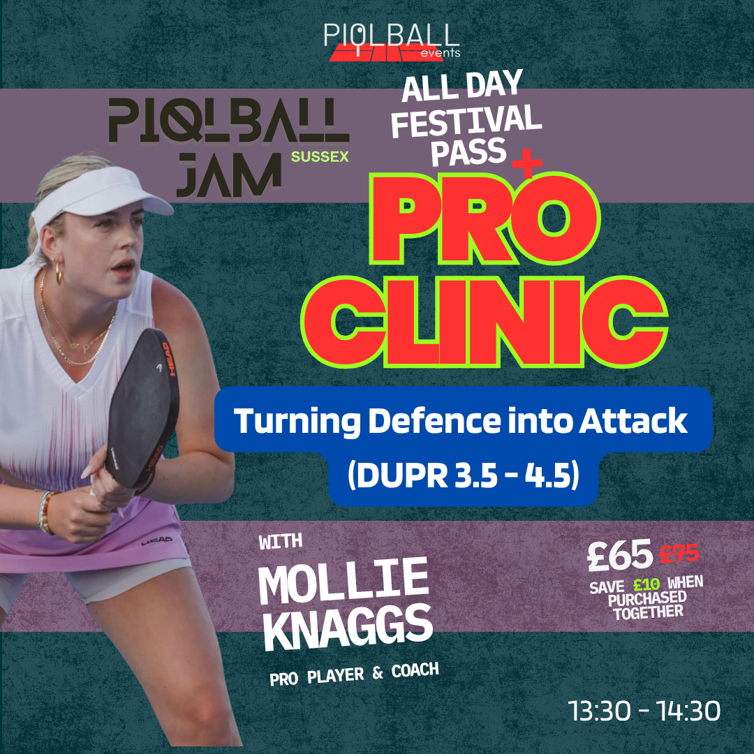 Take your competitive game to the next level with this exclusive bundle, combining full access to the PIQLBALL JAM Sussex Festival with the Advanced Play / Tournament Prep Pro Clinic led by UK Pro Mollie Knaggs.